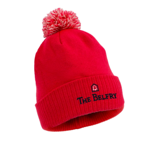 Laadukas paksu neulepipo käänteellä, tupsulla ja yhdellä brodeerauksella (koko n. 5cm)- tyylikäs tupsupipo seuralle tai yritykselle